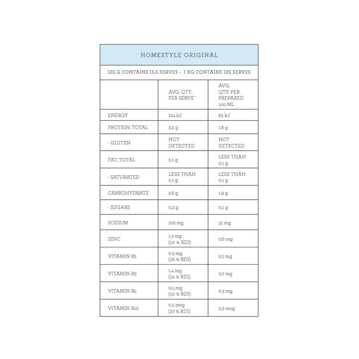 Australian Free Range Chicken Bone Broth* (75%) (Chicken Bones*, Onion*, Apple Cider Vinegar*), Roasted Chicken, Tapioca Starch*, Deactivated Nutritional Savoury Flakes, Pink Himalayan Salt, Black Pepper, Rosemary Extract. *Certified Organic Ingredients
