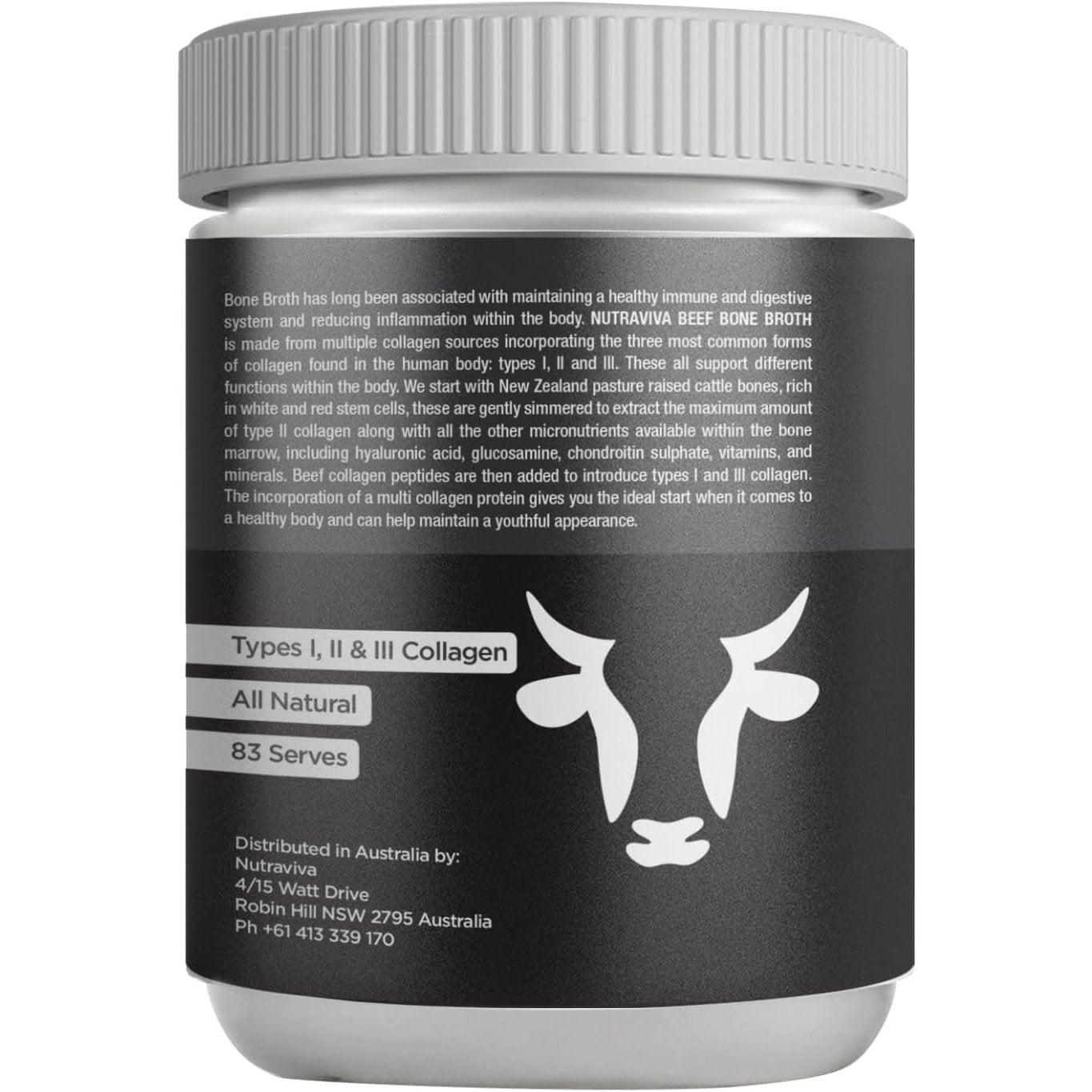 Nutraviva Beef Bone Broth powder is made with pasture-raised Australian and New Zealand beef cattle bones. These specially selected bones are rich in red and white stem cells and the low heat cooking process is used to draw out the collagen, marrow and other healing elements including amino acids, vitamins and minerals. This helps maximize the absorption of flavour, nutrients and goodness into our broths.