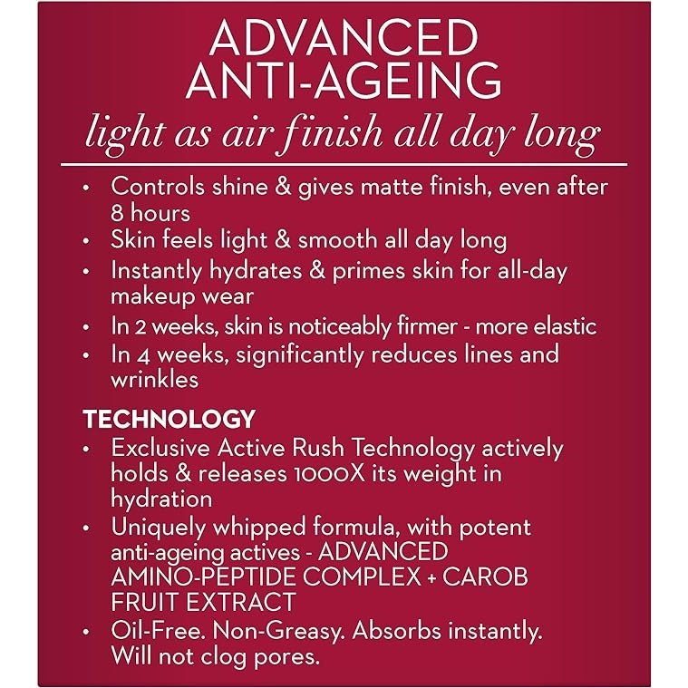 - Uniquely whipped formula, with potent anti-ageing actives - Advanced amino-peptide complex and carob fruit extract
