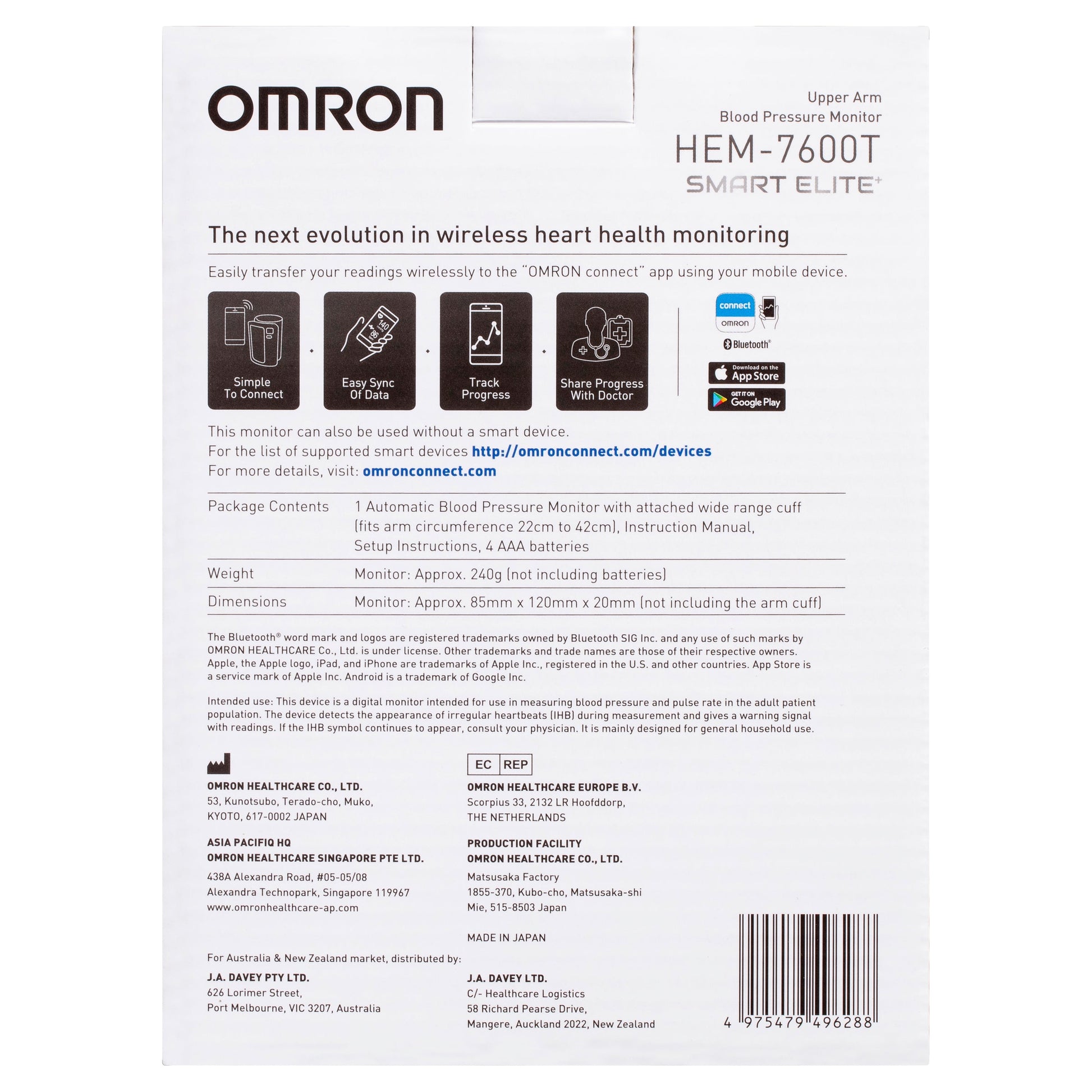 Omron Smart Elite HEM7600T Blood Pressure Monitor Bluetooth Tubeless
