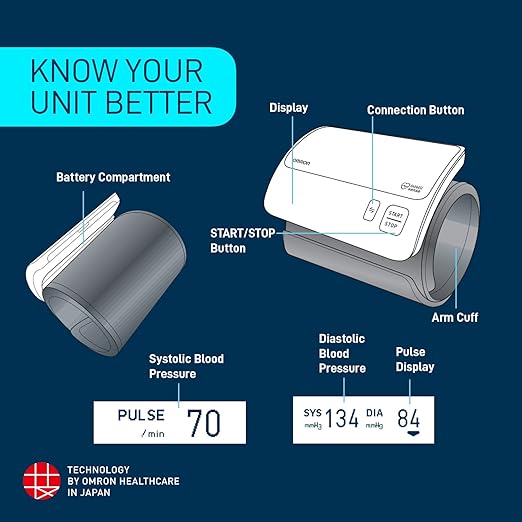 Easy to use and features the latest tubeless technology with a 360° Intelli Wrap Cuff and Bluetooth® conenctivity. It also features 100 reading memory, irregular heartbeat and body movement indicators.