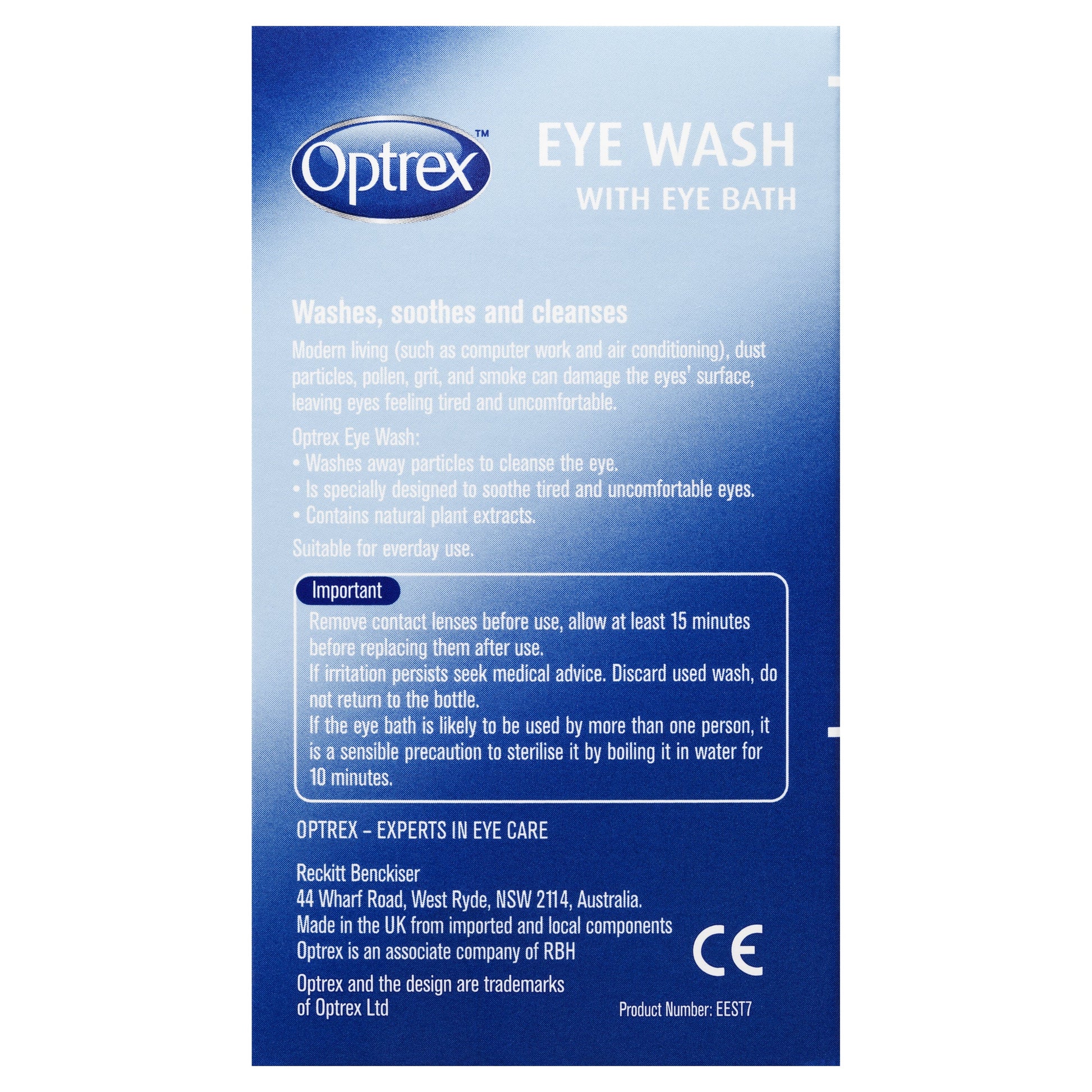 While tears are nature's way of flushing and cleansing the eye, there are times when your eyes will need a little extra help. Optrex Eye Wash will gently bathe, rehydrate and soothe uncomfortable yes caused by everyday living