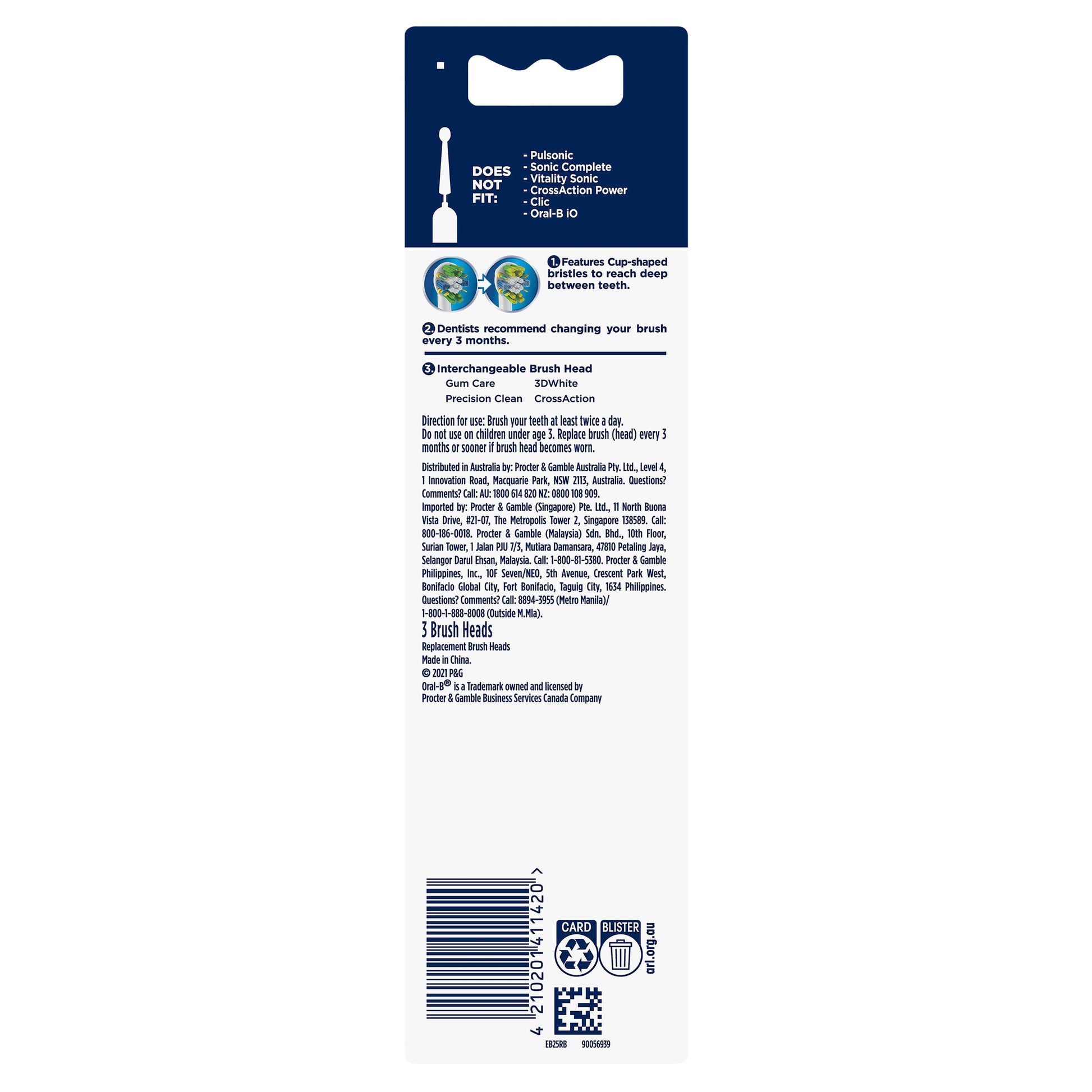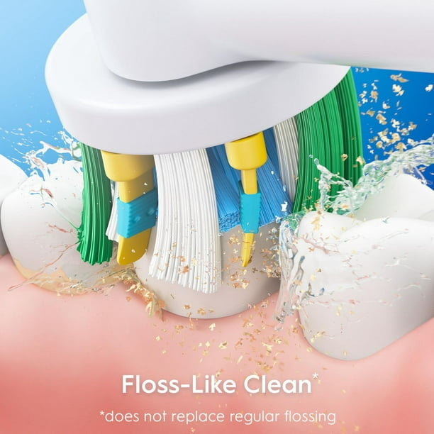 Oral-B Floss Action brush head cleans tooth-by-tooth and features MicroPulse bristles that help provide a superior deep clean between teeth*. The bristles on the round brush head are designed to clean deep between teeth to remove up to 100% more plaque than a regular manual toothbrush when used with an Oral-B electric toothbrush. *vs a regular manual toothbrush #Boxed Contents: 3