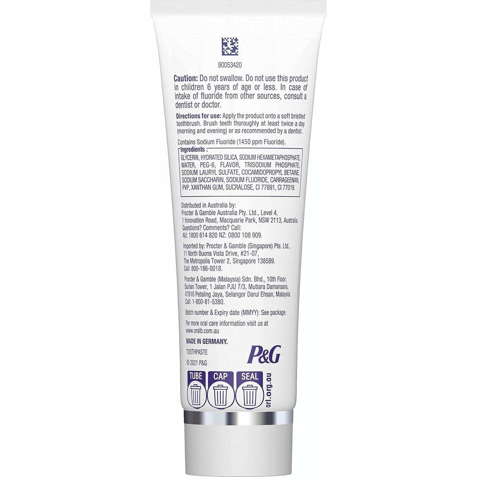 Oral-B 3DWhite Lasting White Toothpaste is clinically proven to remove up to 100% of stains* and provide 24-hour active stain resistance** Oral-B 3DWhite Lasting White Freshness Blast Toothpaste is peppermint flavoured to provide freshness during and after brushing. Oral-B is the #1 Toothbrush brand used by dentists worldwide.Size: 95 G