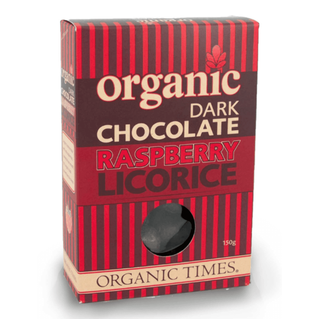 ORGANIC TIMES Dark Chocolate Raspberry Licorice 150g