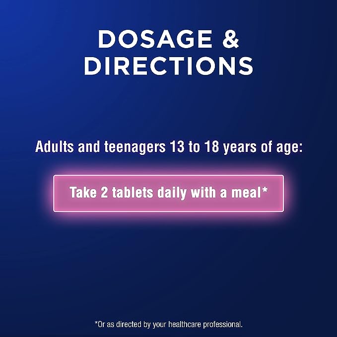 Teenagers 13-18 years: Take 2 tablets daily with a meal.