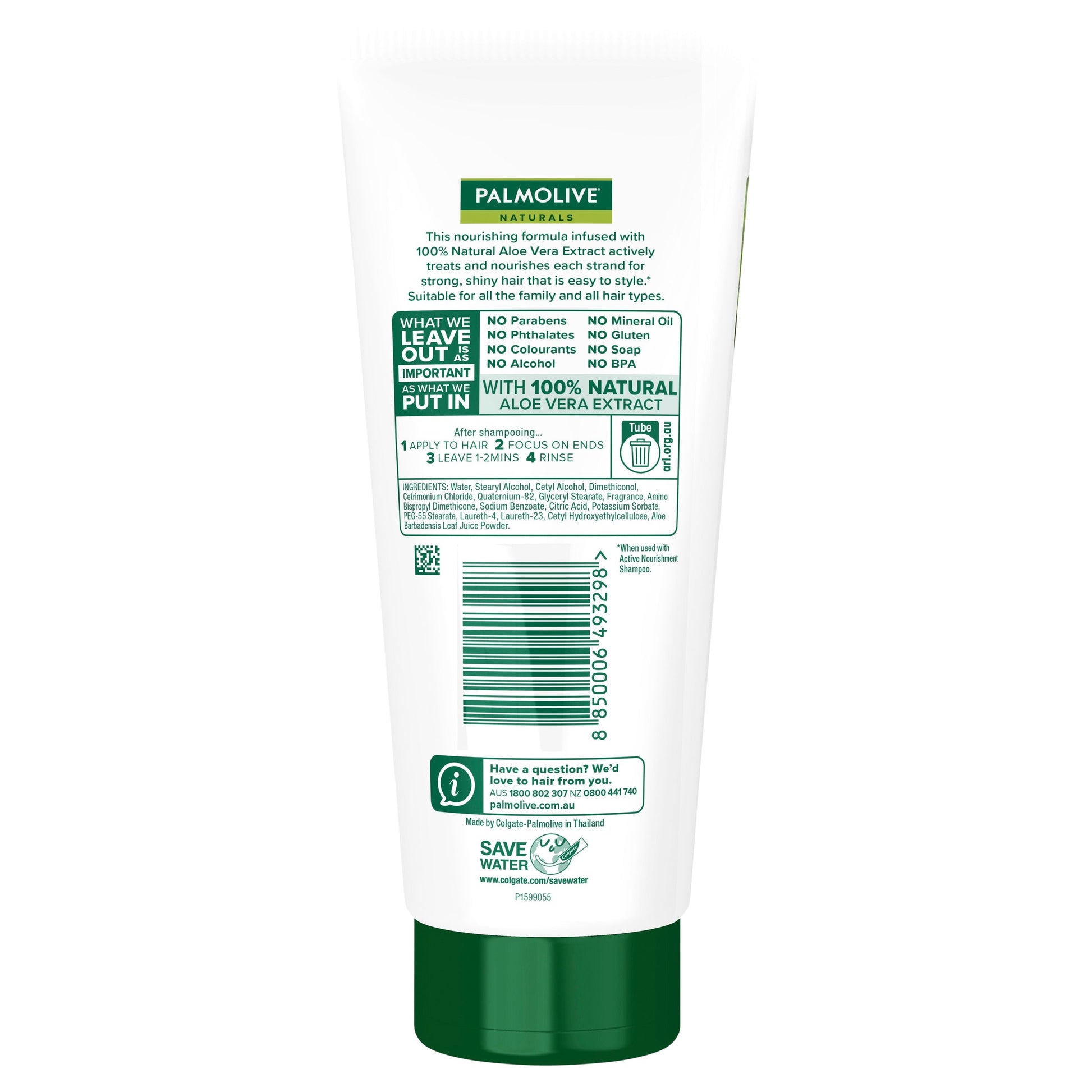 Palmolive Naturals Hair Conditioner Active Nourishment Aloe Vera for all hair types with 0% parabens, phthalates and alcohol.