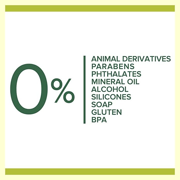 • Free from Parabens, Phthalates, mineral oil, alcohol, Silicones, soap, gluten, BPA, and Animal Derived ingredients.