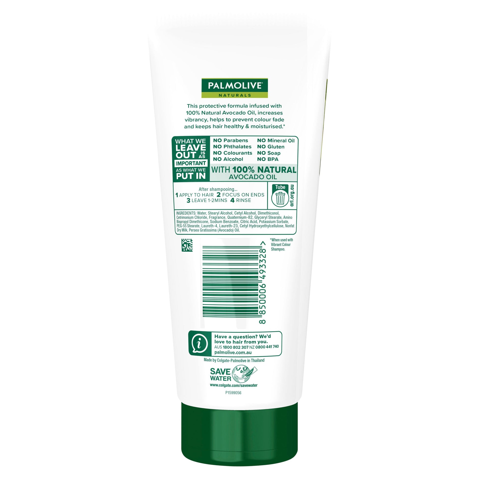 Palmolive Naturals Hair Conditioner Vibrant Colour Avocado for colour treated hair with 0% parabens, phthalates and alcohol.