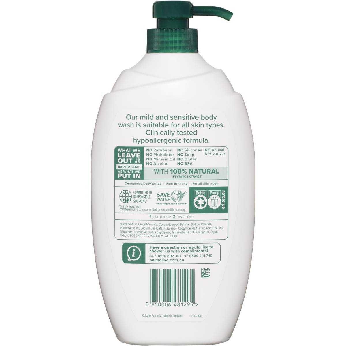 BODY WASH WITH NATURAL EXTRACTS: Palmolive Naturals Mild & Sensitive Body Wash is made with 100 percent Natural Styrax Extracts