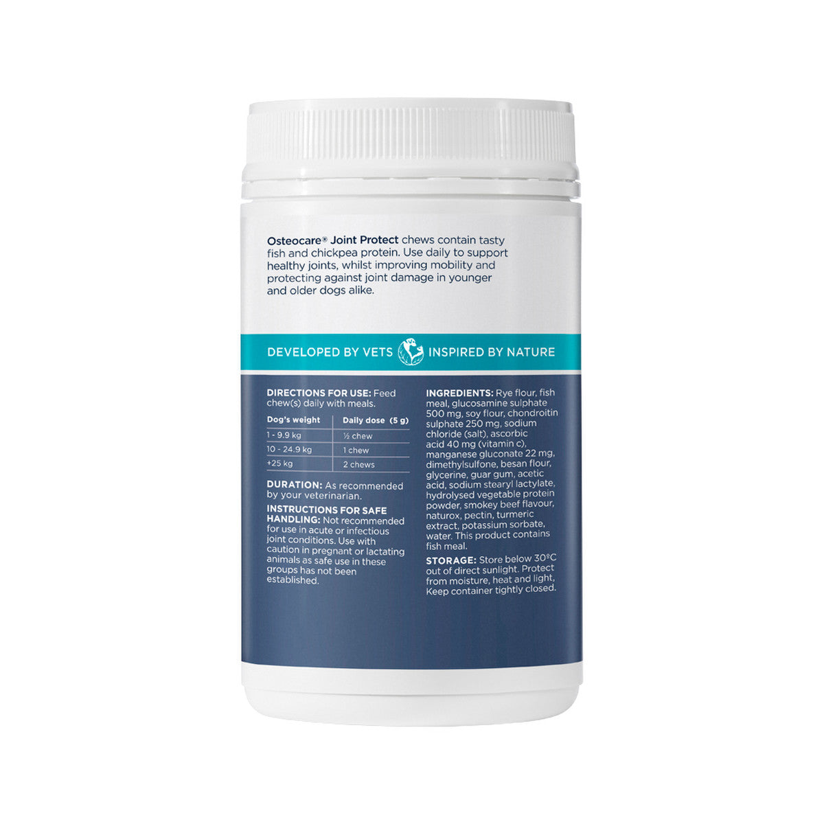 PAW Osteocare® Joint Protect chews can be used if your dog is showing symptoms of stiffness, and limping or as a preventative measure. These chews are a great option for young active dogs as well as older dogs at risk of developing osteoarthritis. Each PAW Osteocare chew contains: