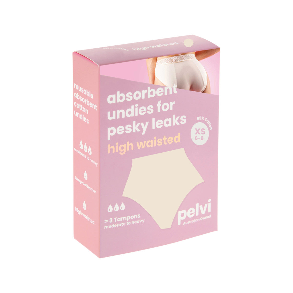 Pelvi leakproof underwear uses 4 super absorbent layers to hold up to 20ml of fluid. The moisture-wicking layer also draws sweat and discharge away from the source and fights bacteria to keep you fresh. Only 2.5mm thick, Pelvi leakproof underwear is slimmer than bulky pads. Using reusable leakproof underwear is healthier for your body. No harsh chemicals or fibres like disposables. Simply machine wash, dry and re-use.