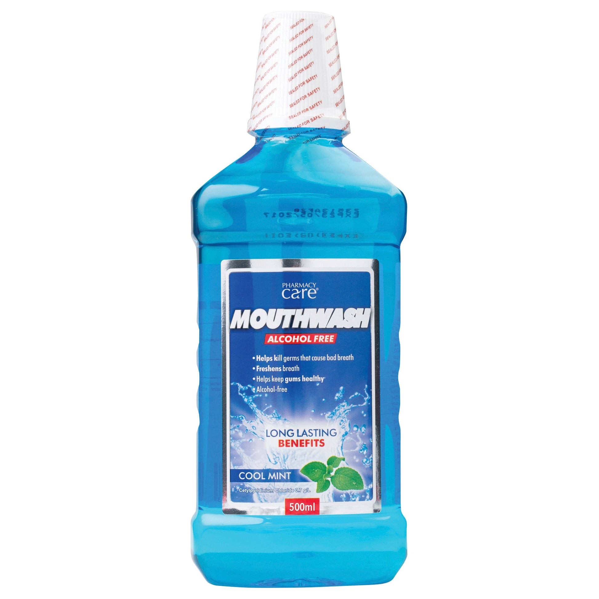 Pharmacy Care Mouthwash helps kills germs that cause bad breath, Freshens breath, helps keeps gums healthy & is Alcohol free