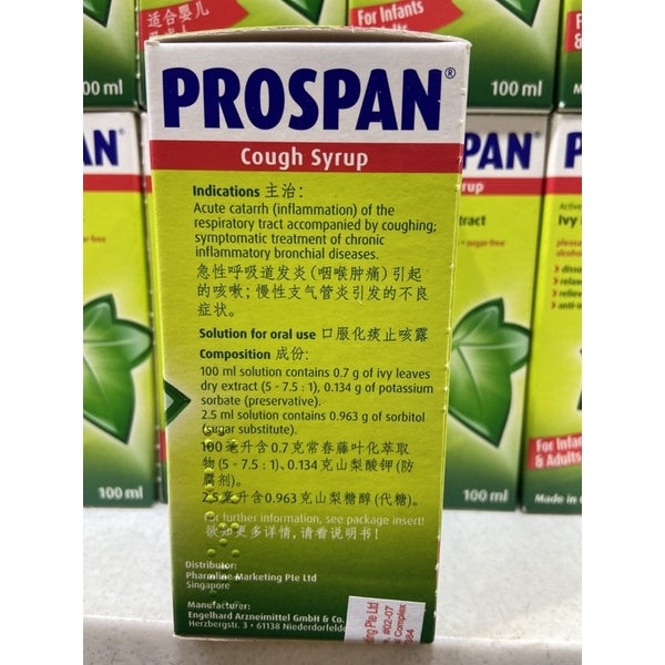 This medicine may not be right for you. Read the warnings before purchase. Follow the directions for use. If symptoms or coughing persist, talk to your health professional. Prospan is not to be used in children under 2 without medical advice.