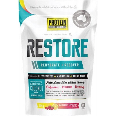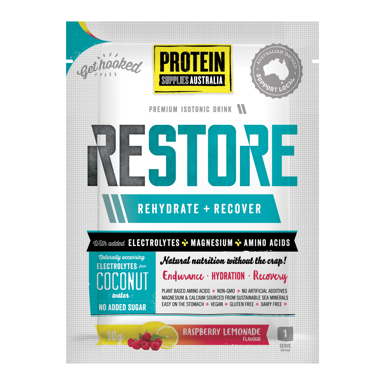 PROTEIN SUPPLIES AUSTRALIA Restore Hydration Recovery Drink Raspberry Lemonade 200g