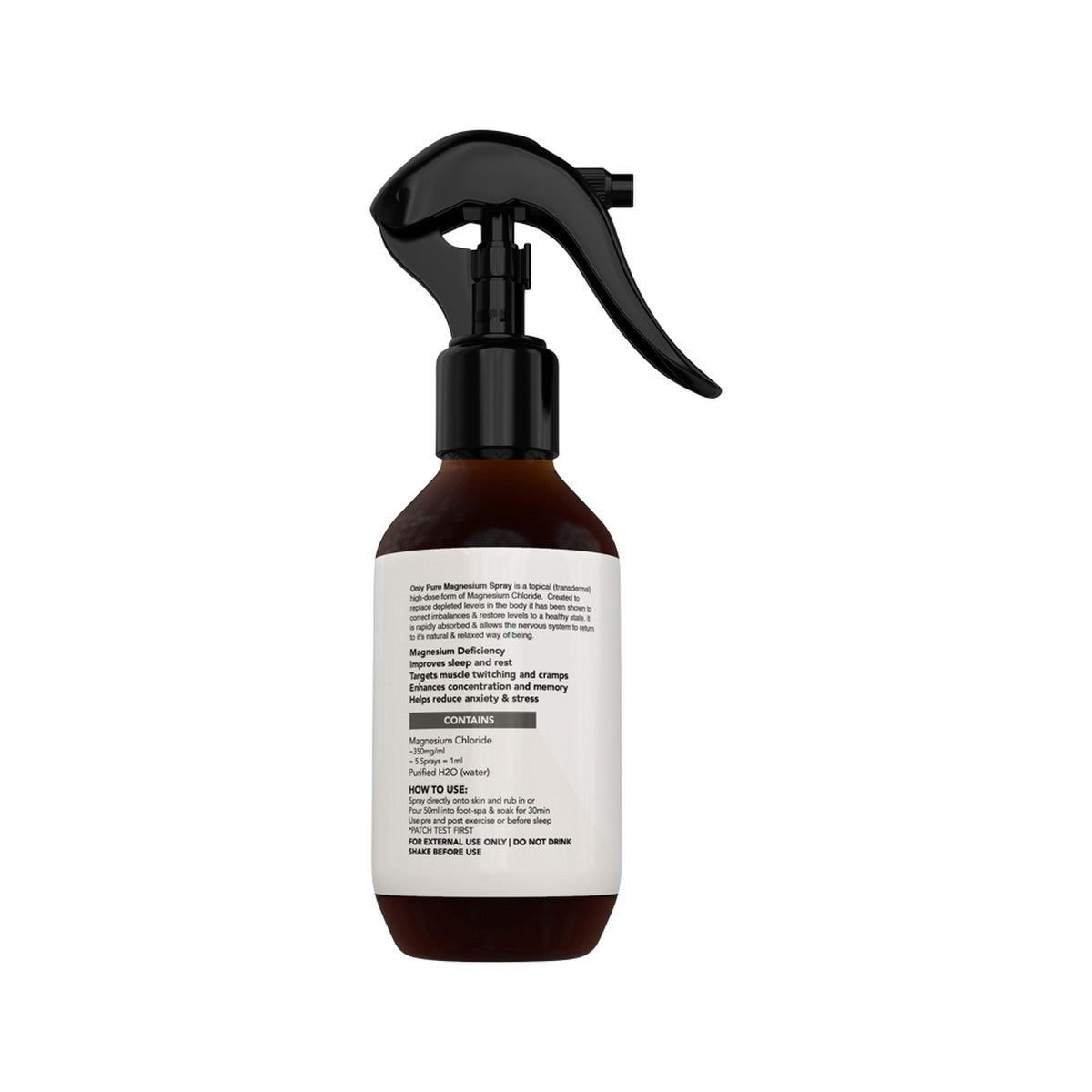 HOW TO USE: Spray this magnesium oil directly onto your skin and gently rub it in for a great transdermal magnesium source. Spray on feet & stomach at bedtime. Pour 50ml into a warm foot spa & soak for 30 min. Use pre- and post-exercise or before sleep