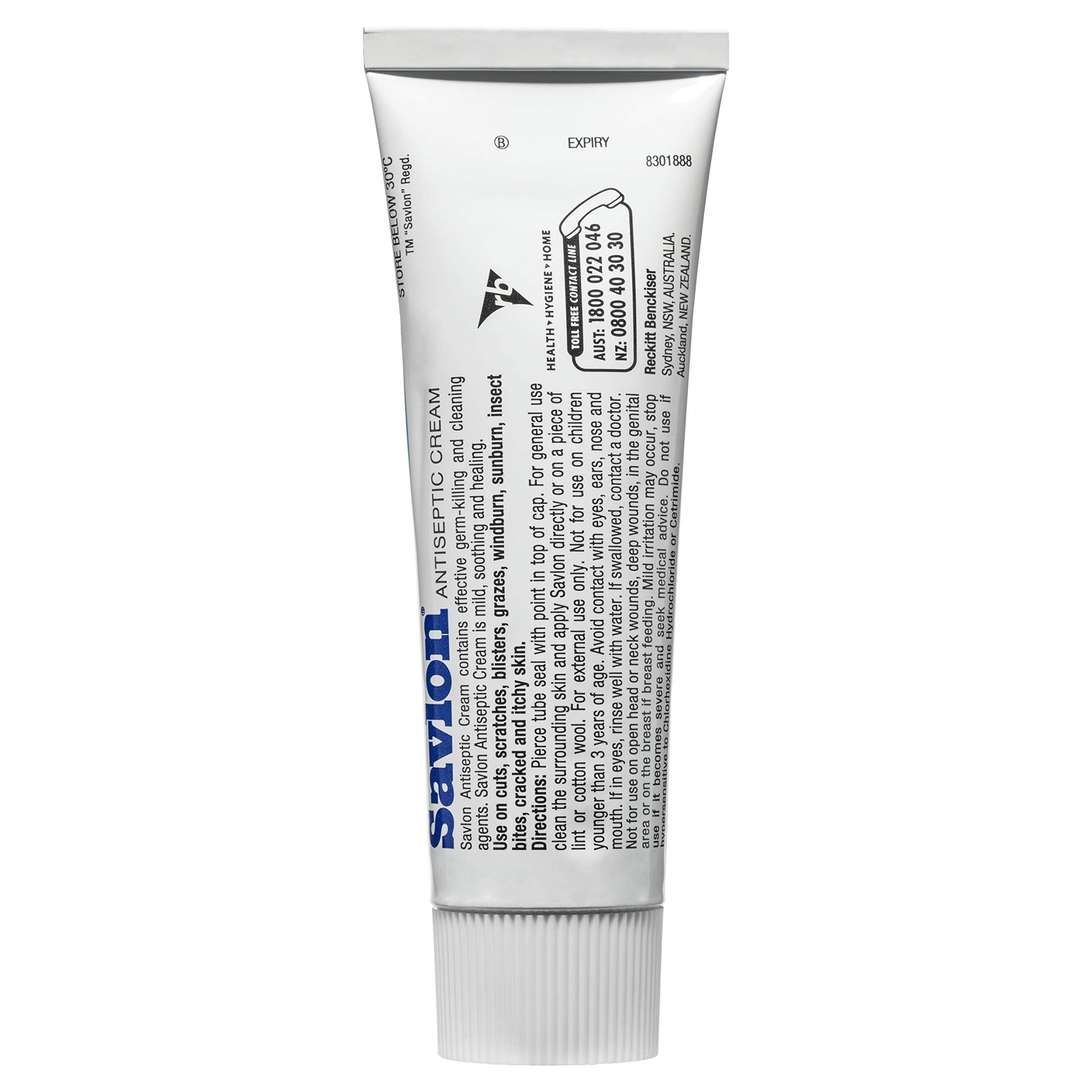 Savlon Antiseptic Cream contains effective germ-killing and cleansing agents. Savlon‰۪s smooth moisturising cream base allows gentle application onto damaged skin. Savlon Antiseptic Cream is mild, soothing and healing.