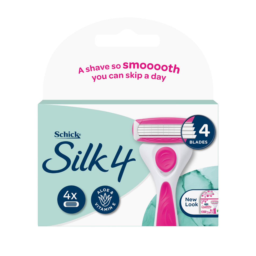 Quattro is now more comfortable than ever. With 4 durable blades with lubricating Aleo Vera and rubberised handle for total control.