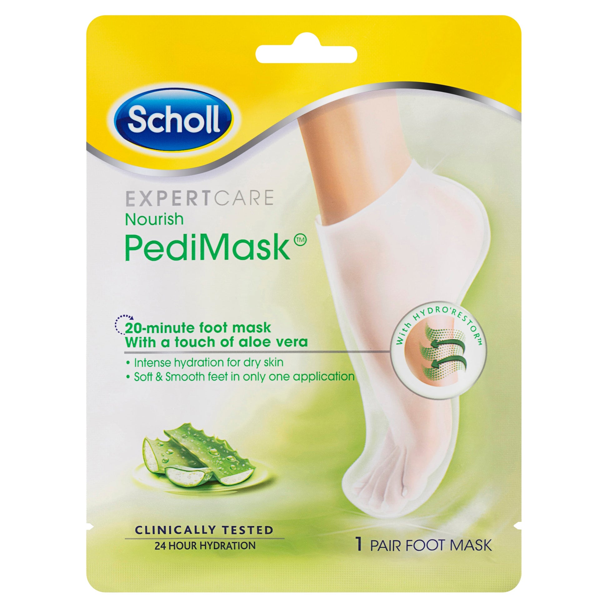 Get soft and smooth feet in just one application. Scholl Nourish PediMask with a touch of Aloe Vera provides intense hydration for dry skin.