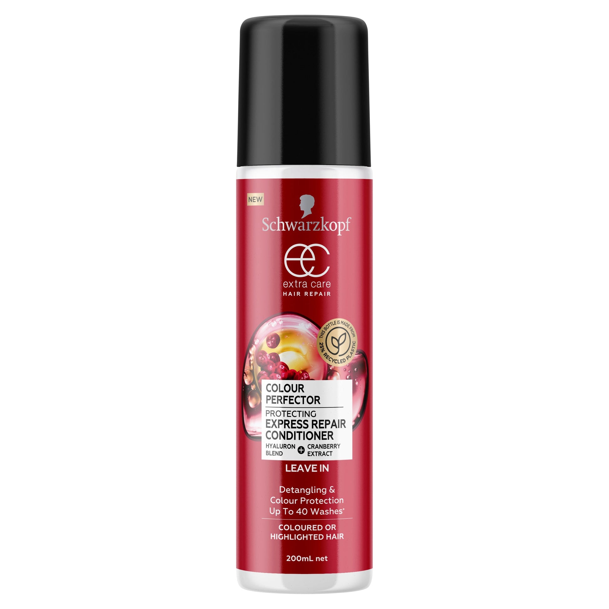 Schwarzkopf Extra Care Colour Protect & Shine Express Repair Conditioner provides immediate combability, anti-fading and radiant vibrancy.