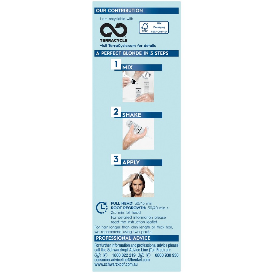 Boxed Contents: 1 Tube Lightening Cream 50mL, 1 Applicator Bottle with Developer 50mL, 1 Sachet Blonde Booster Ultra Plus 20g, 1 Colour After Treatment 22.5mL, 1 Pair of Gloves, 1 Instruction Leaflet, 1 Applicator Tip