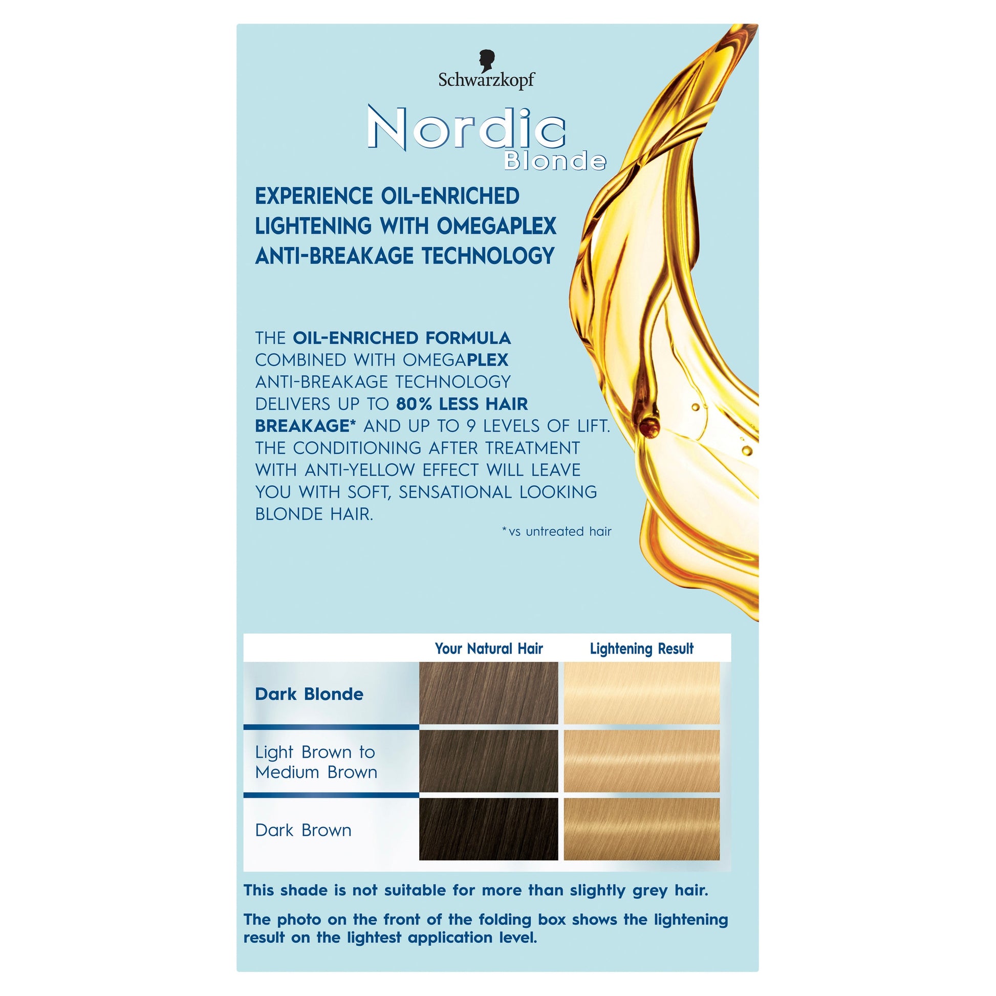 Schwarzkopf Nordic Blonde L1++ Ultimate Lightener provides up to 9 levels of lift.