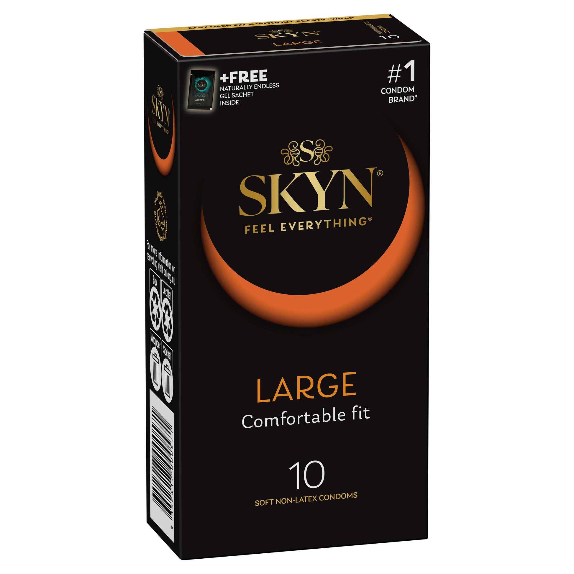 Skyn Large Soft Non-Latex Condoms provides a comfortable fit.