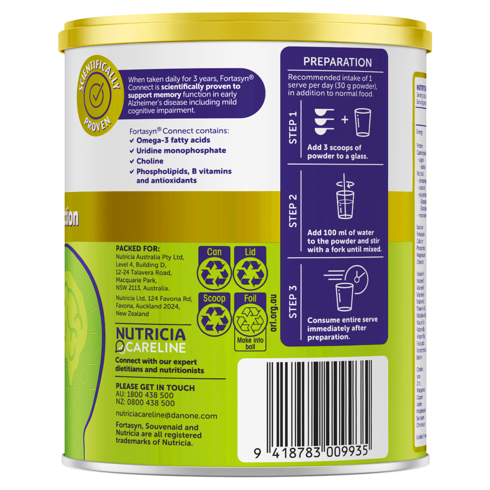 Souvenaid is powered by Fortasyn Connect®, a unique blend of ingredients to support the growth of brain connections.