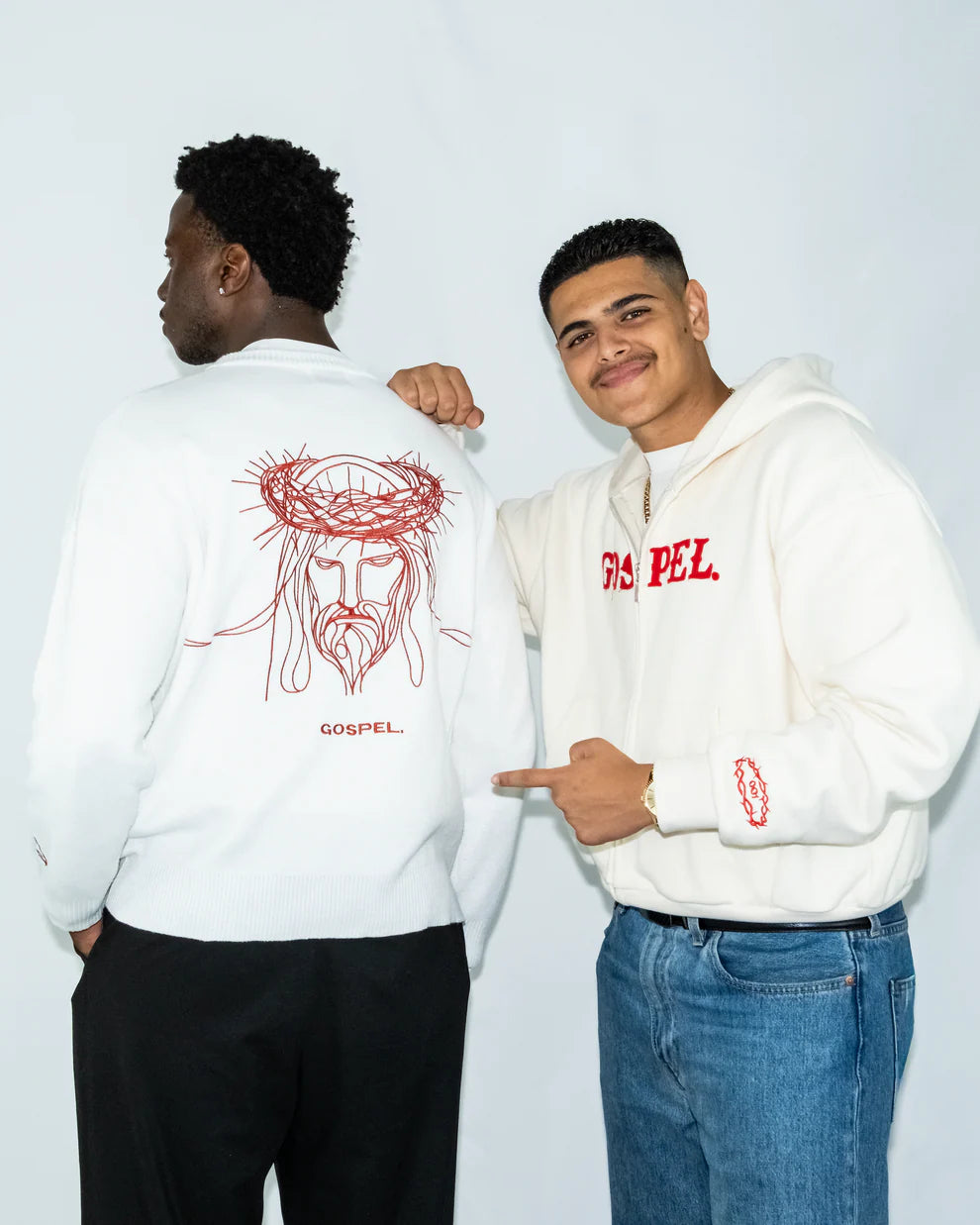 On the left sleeve, a “001” encircled by a crown of thorns marks Drop One; the beginning of the story. A statement of faith, identity, and reverence, this piece reminds us that grace came at a price, and boldness is born from redemption.