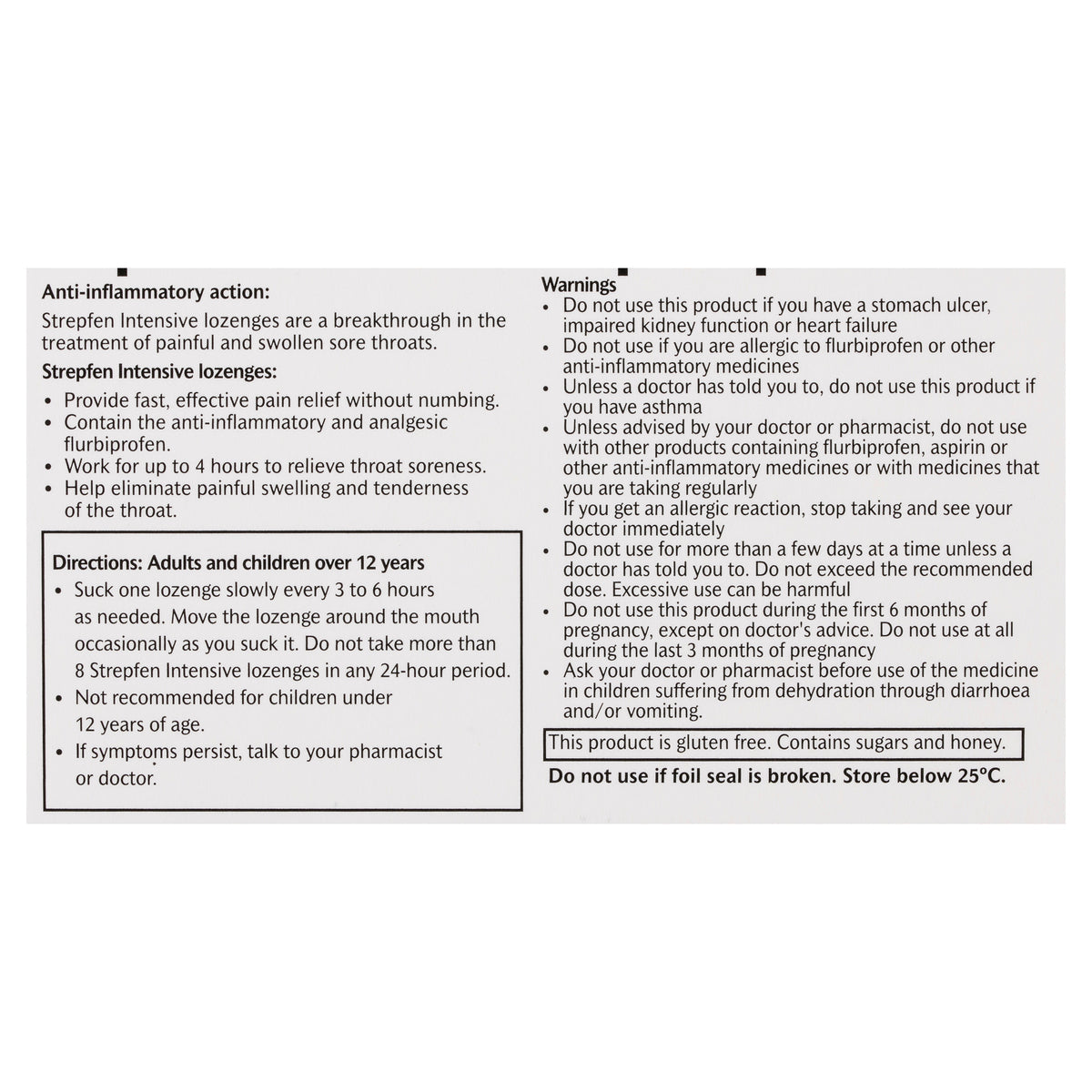 Do not take Strepfen if you have ever had a stomach ulcer, are allergic to flurbiprofen, aspirin or other NSAIDS, are pregnant or children under 12yrs.