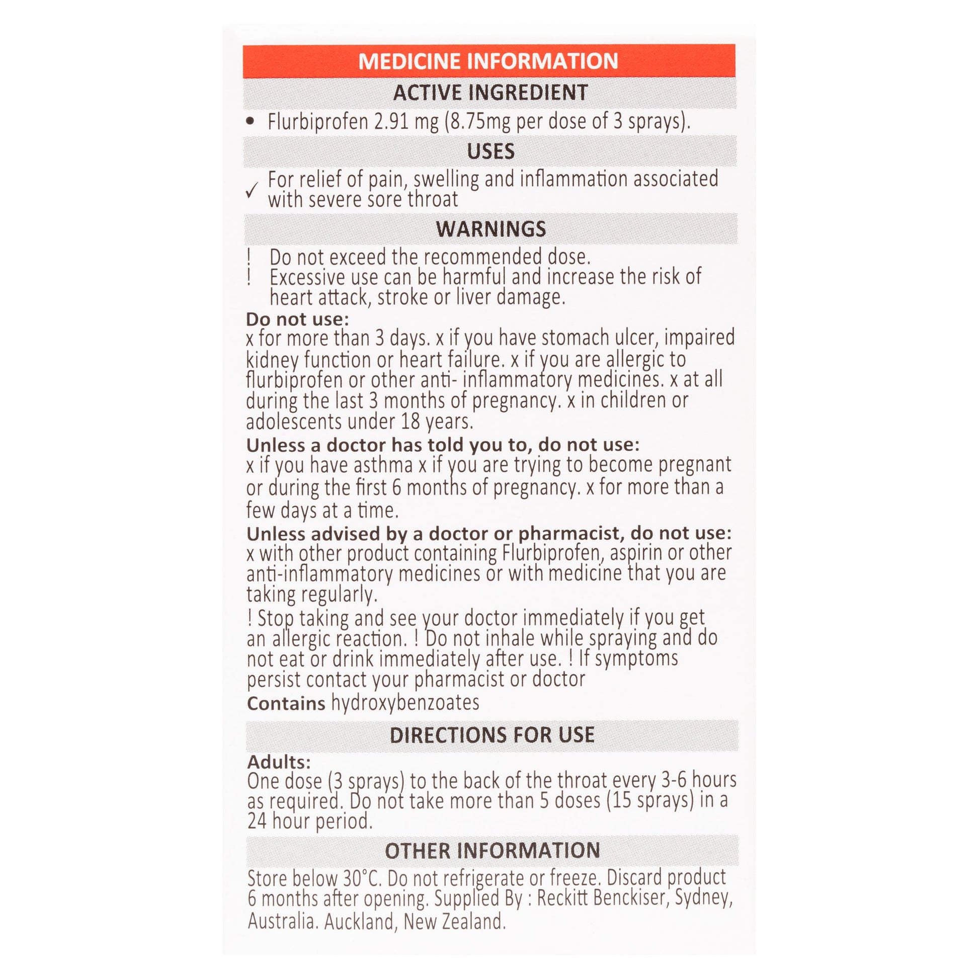 - Contains the anti-inflammatory and analgesic flurbiprofen