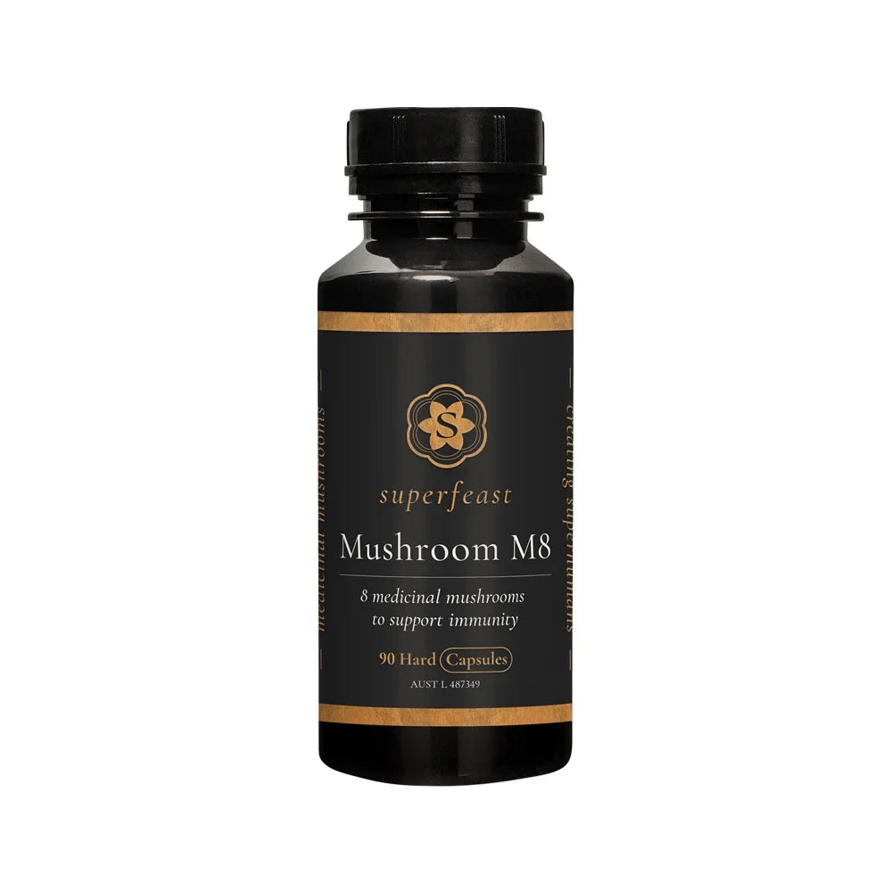 Mushroom M8 contains 8 of the world's favourite medicinal mushrooms in a single capsule, hand-picked to support immunity, gut health, hormonal function, and the nervous system.