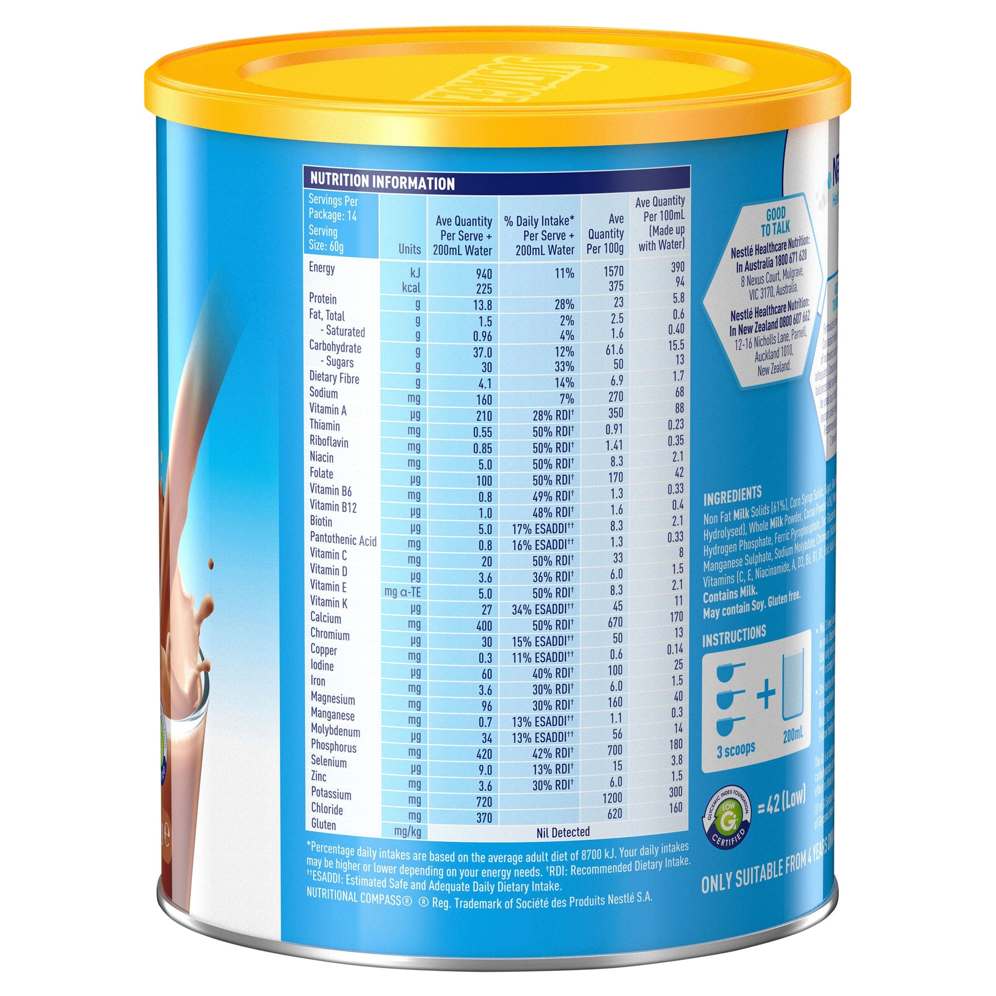 * High in fibre (3.5g/serve, soluble and insoluble)