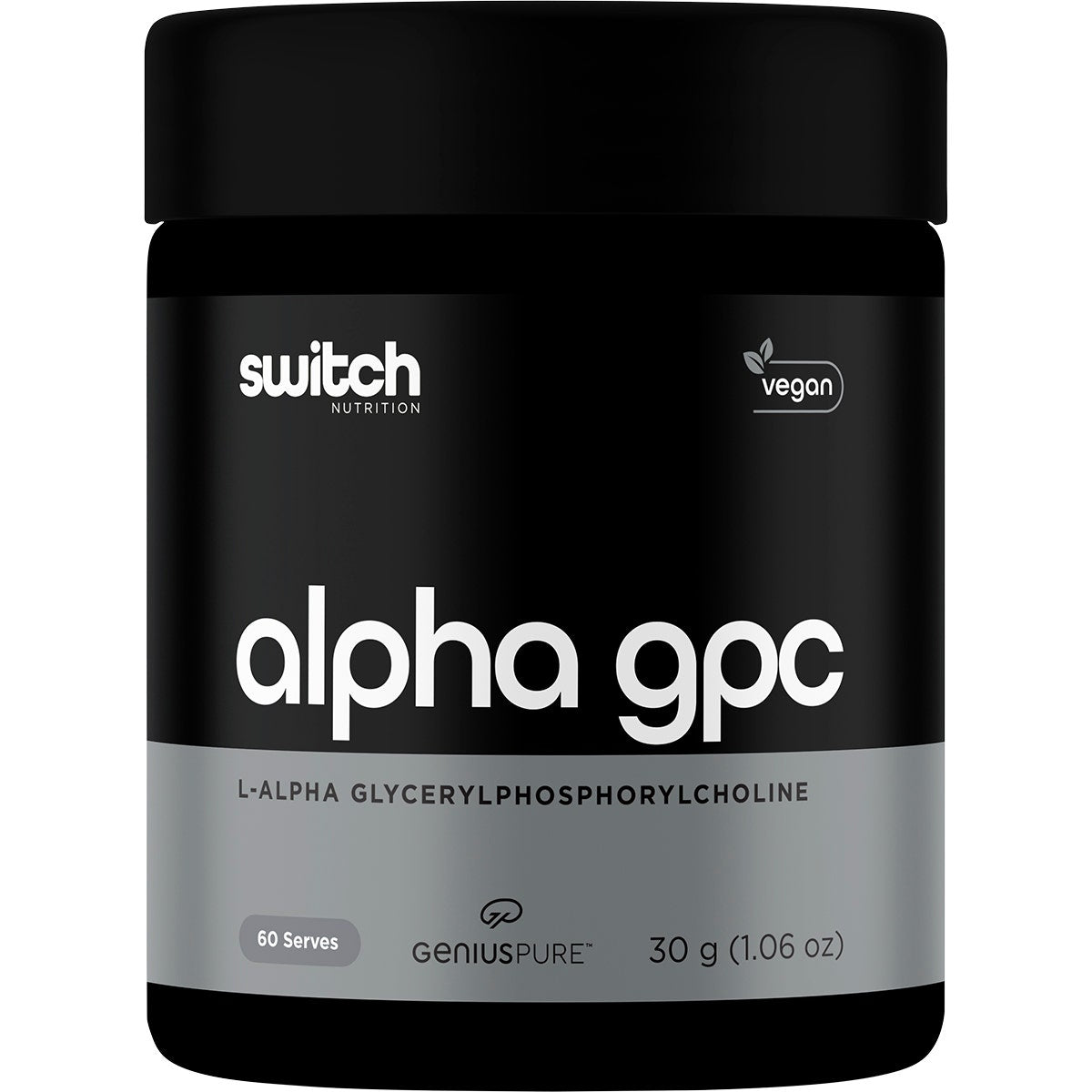 "SWITCH NUTRITION Alpha GPC 30g contains 100% pure Alpha GPC, a naturally occurring compound that has been shown to support mental performance and cognitive function. With its high purity and potency, this supplement can help improve memory, focus, and overall brain health."