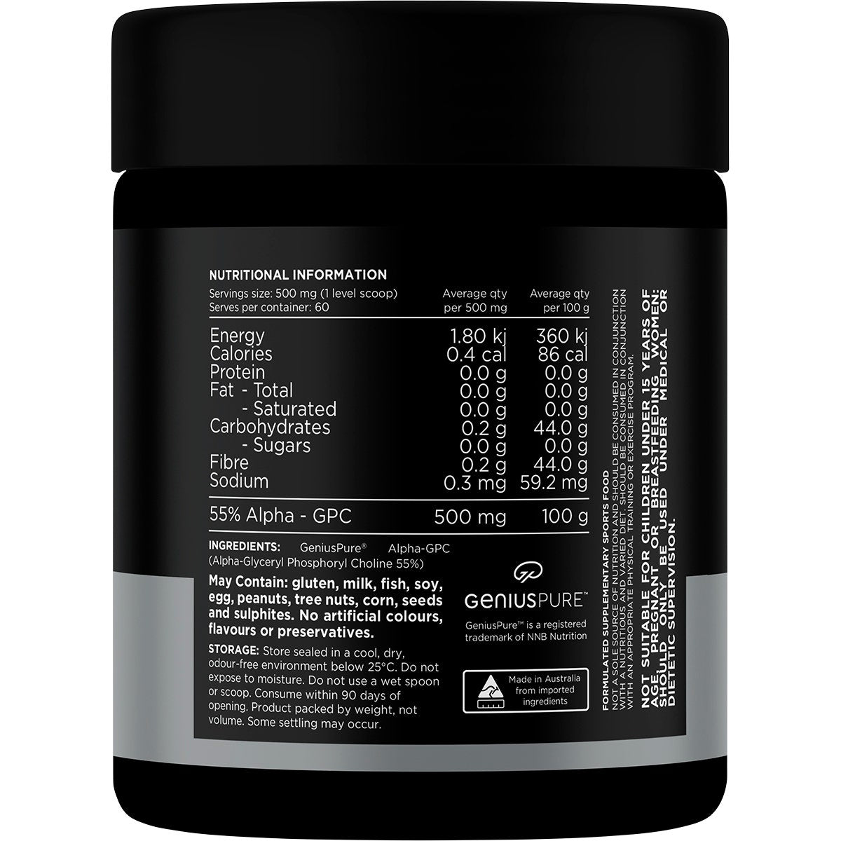 GeniusPure Alpha-GPC (Alpha-Glyceryl Phosphoryl Choline 55%).