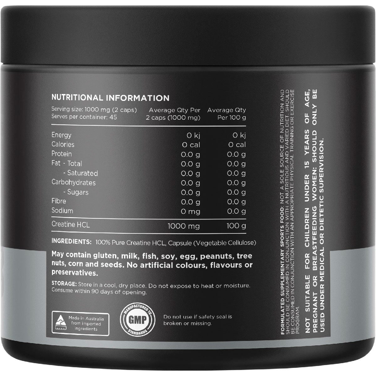 100% Pure Creatine HCL, Capsule (Vegetable Cellulose).