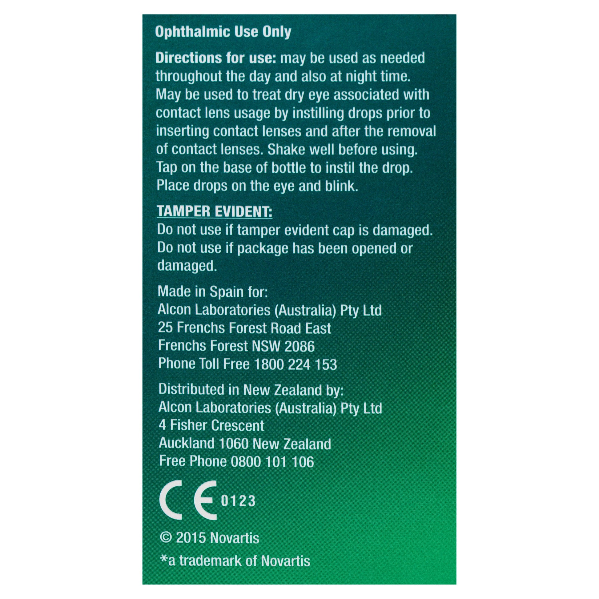 Contains: Polyethylene Glycol 400 0.4% w/v, Propylene Glycol 0.3% w/v
