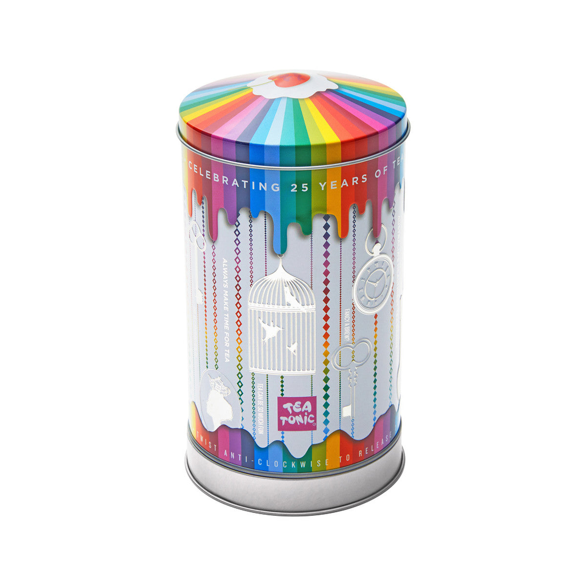 This spinning and singing Musical Celebration Tin is the perfect way to celebrate 25 years of Tea Tonic! It includes our deliciously sweet Celebration tea, plus a stainless steel butterfly infuser and mini gold sugar to make your tea sparkle. Whether you're enjoying a cup of tea for yourself or sharing it with friends, this tin is sure to add magic and fun!