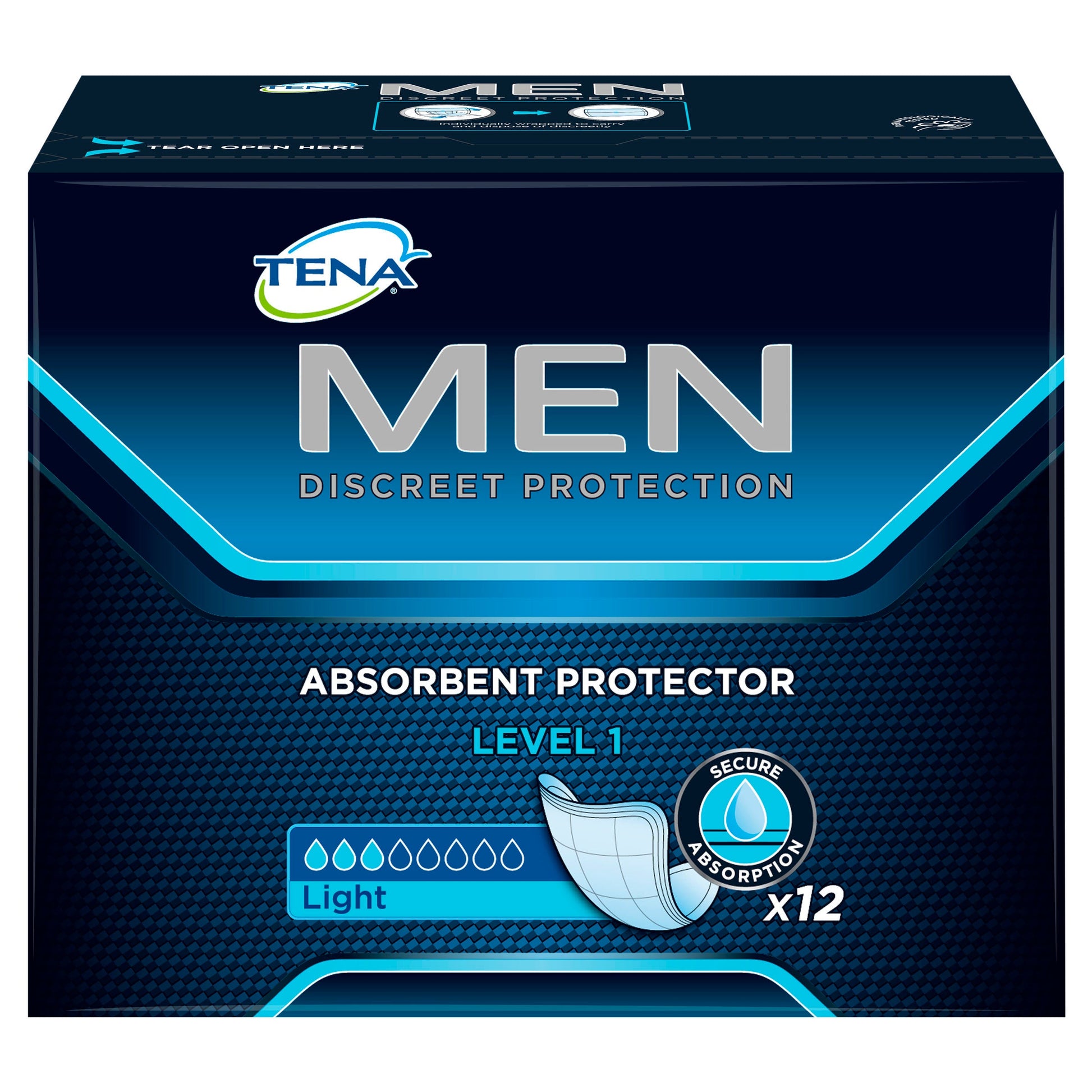 - TENA Men Absorbent Protector is individually wrapped