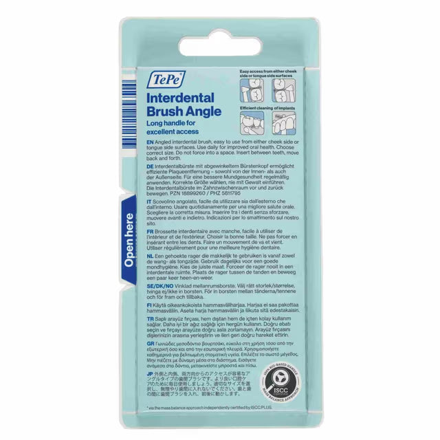 TePe Interdental Brush angle pink ISO size 0, 0.4mm, clean the gaps between teeth, where a regular toothbrush is unable to reach. It also cleans implants, crowns & bridges. Furthermore, it is suitable for cleaning around brackets and wires during orthodontic treatment.
