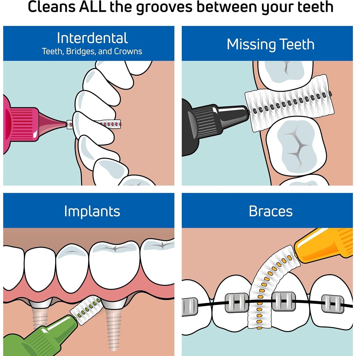 The brush comes in 9 color-coded sizes to fit narrow and wide gaps - ISO sizes 0-8. The brushes have been developed in collaboration with dental experts to ensure the highest quality in every detail.