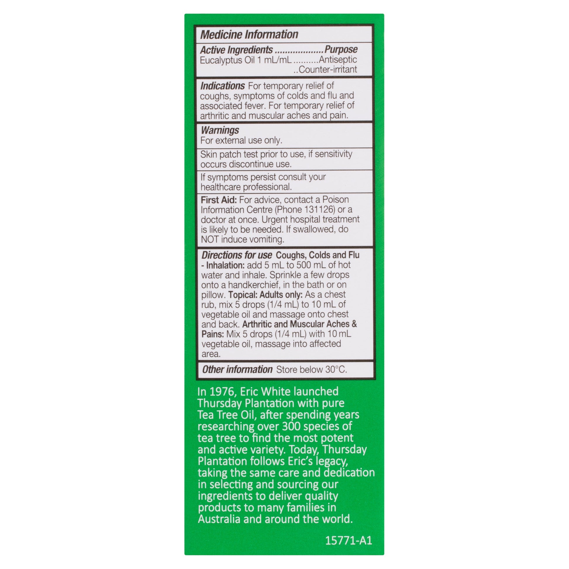 Thursday Plantation 100% Pure Eucalyptus Oil is a pharmaceutical grade oil with a wide range of personal and household uses.