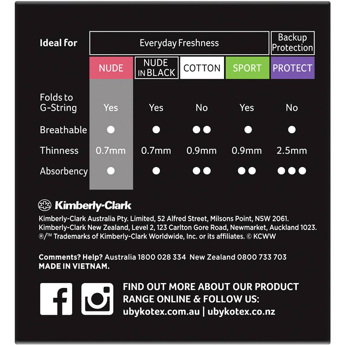 U by Kotex Nude Liners are designed for Everyday Freshness. Breathable and unbelievably thin, you'll feel like you're wearing nothing at all. Don't forget, these 2 in 1 liners are perfect for both your favourite pair of undies or g-string.