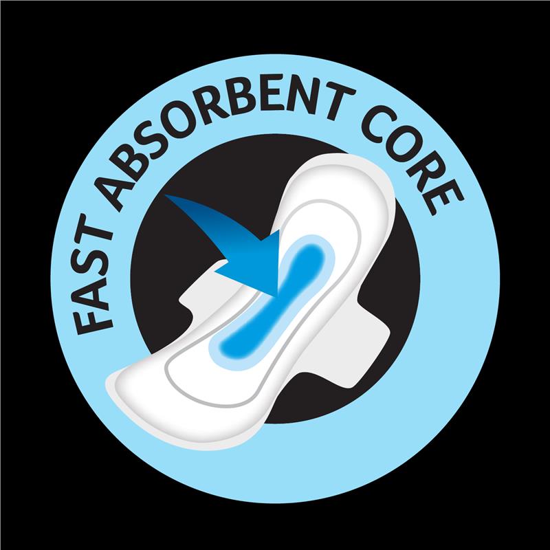 - With fast absorbing blue core to provide greater protection by quickly drawing fluid into the pad