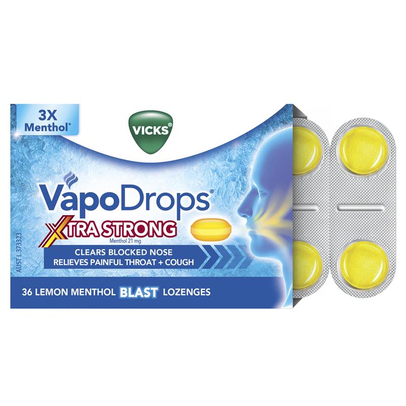 Vicks VapoDrops Xtra Strong Lemon Menthol Blast 36 Lozenges