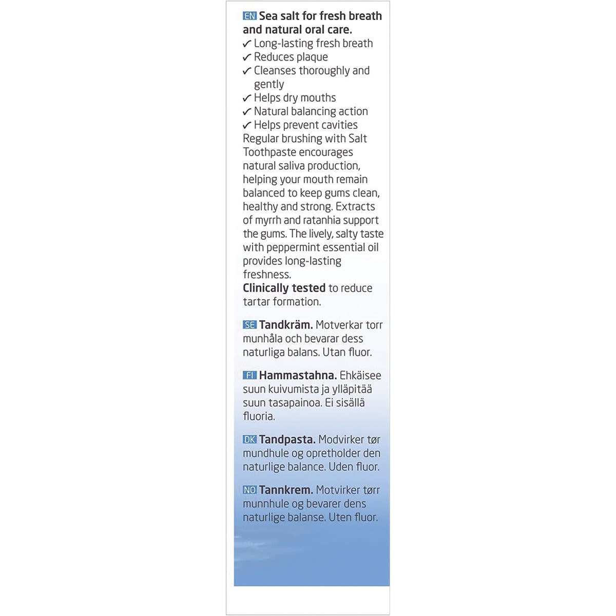 Sodium Bicarbonate, Water (Aqua), Glycerin, Silica, Mentha Piperita (Peppermint) Oil, Prunus Spinosa Fruit Juice, Commiphora Myrrha Resin Extract, Krameria Triandra Root Extract, Aesculus Hippocastanum (Horse Chestnut) Bark Extract, Arum Maculatum Root Extract**, Sodium Chloride, Cyamopsis Tetragonoloba Gum*, Simmondsia Chinensis Seed Oil, Alcohol, Esculin, Lactose, Flavor*, Limonene*, Linalool*. *From Natural Essential Oils **In Highly Diluted Form.WEL224WEOCTSALOCPP