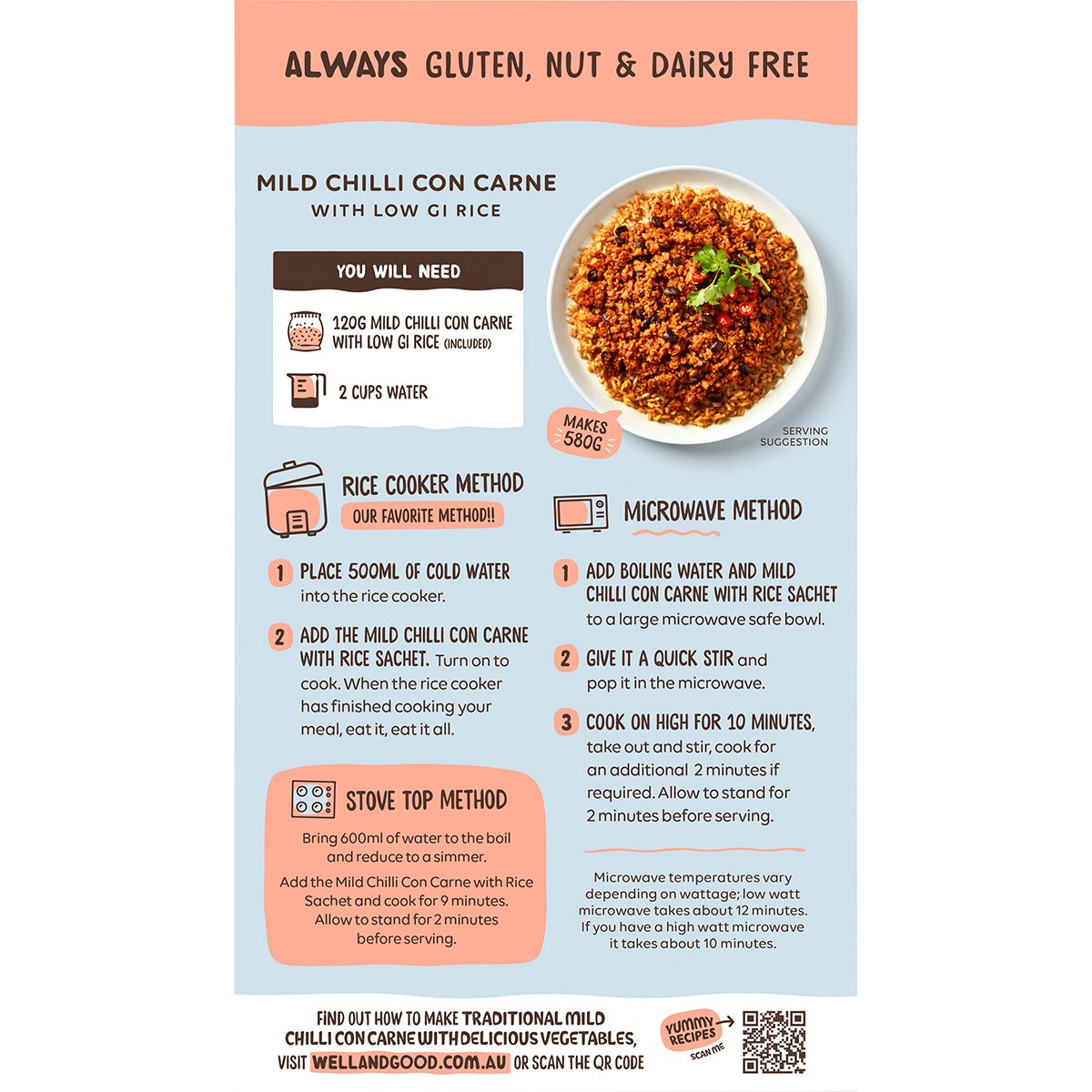 Well & Good Mild Chilli Con Carne with Low GI Rice 120g