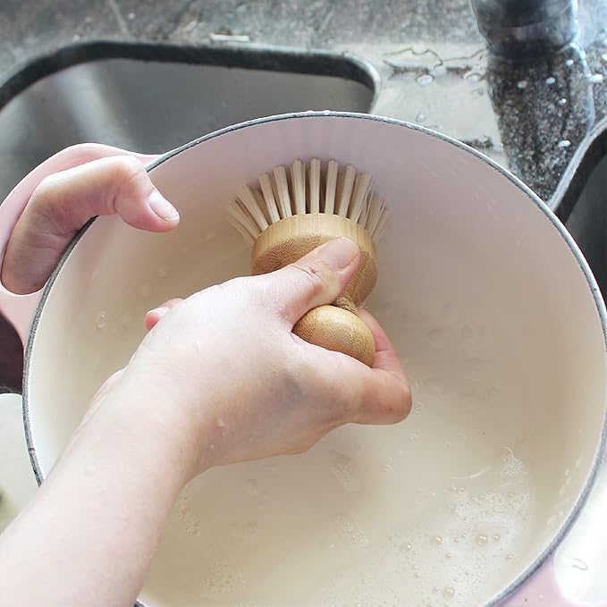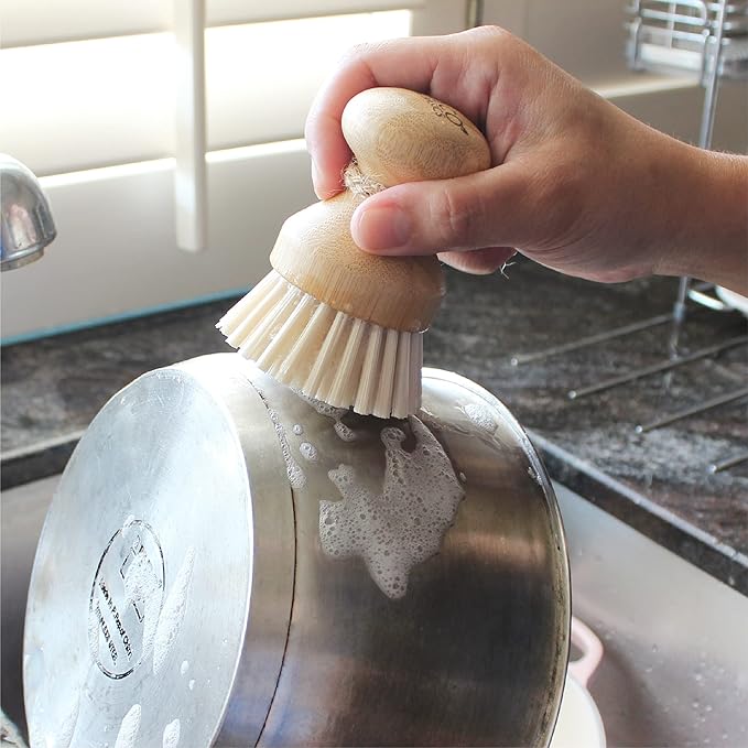 Made from bamboo and recycled firm nylon bristles, this White Magic Eco Basics Pot Cleaning Brush is a must have for any kitchen. With a firm knob grip, this Pot Brush will make short work of scrubbing food, grease and burnt bits from your pots, pans and baking trays. The bristles will also work on your non-stick cookware without scratching.