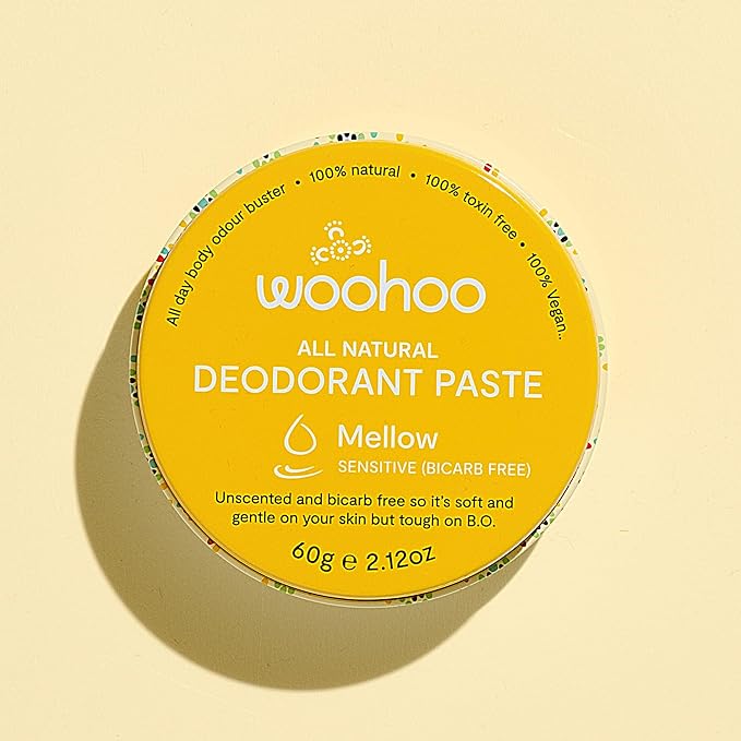 This is a very different Woohoo - a bicarb soda-free, fragrance and essential oil-free Woohoo All Natural Deodorant Paste. If your skin is sensitive, Woohoo Mellow is your go-to deodorant.