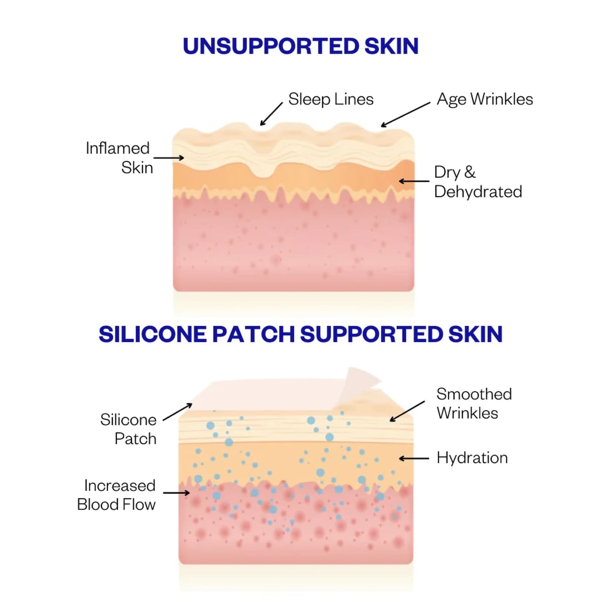 1. Cleanse and dry skin, keeping it free of ANY skincare 2. Peel away the plastic layer of the Silicone Patch to reveal adhesive 3. Stick Silicone Patch on the target area, adhesive side on the skin 4. Wear while you sleep for best results, or 1–2 hours for a boost 5. After use, gently peel off Patches, sticking them on the enclosed storage sheetWarnings: